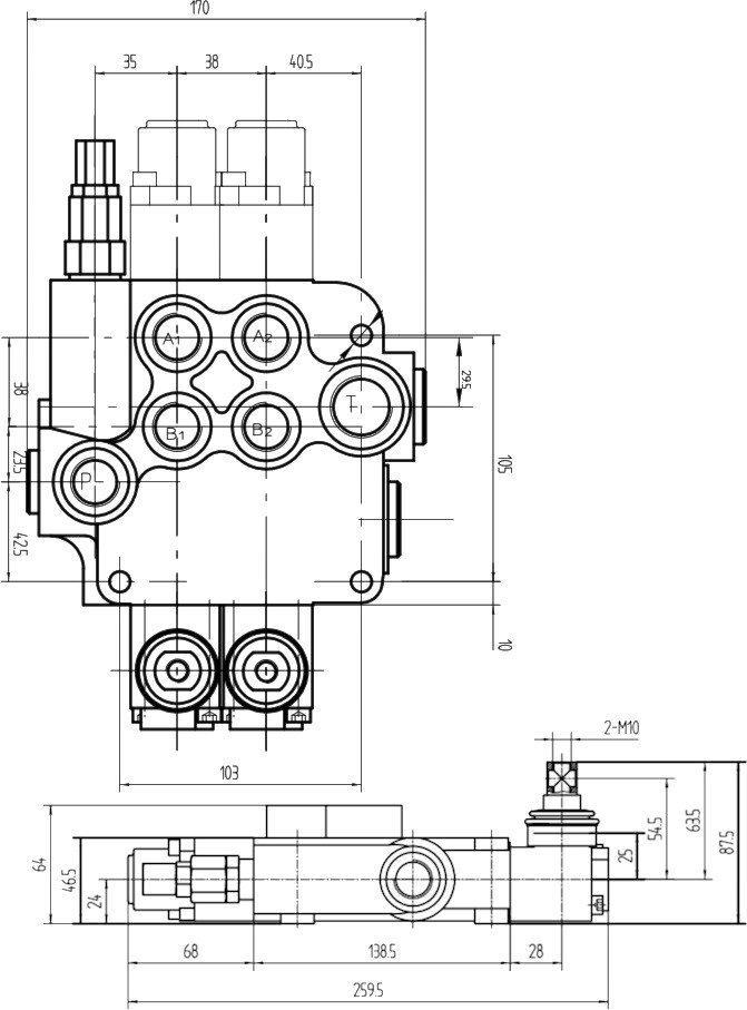 ГІДР. ДИСТРИБ'ЮТОР. 2 СЕКЦІЇ 80Л ЗАСУВКА ДВОСТОРОННЯ.