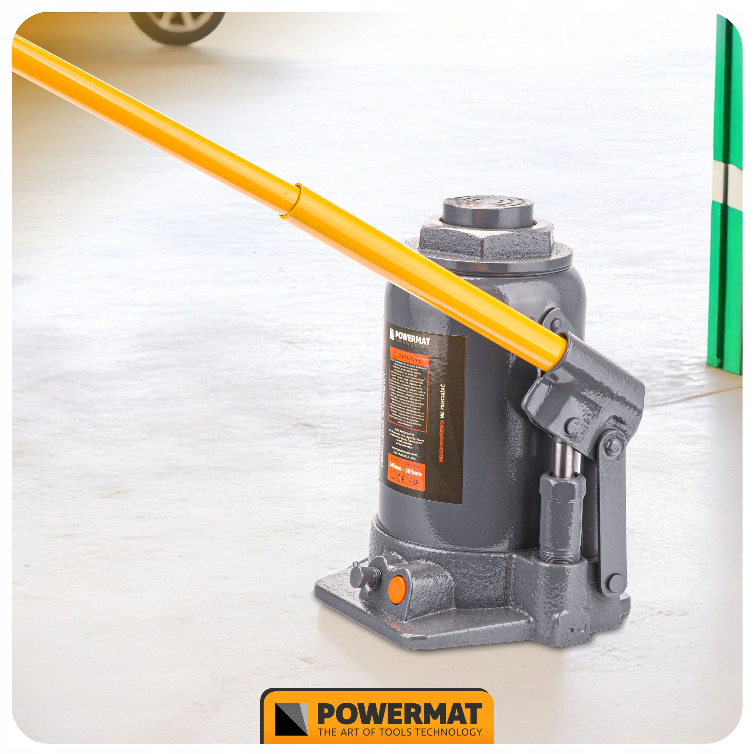 Жовійний і безпечний гідравлічний підйомник Powermat є ідеальним рішенням для гаража та майстерні. Суцільна сталева конструкція, стабільна основа та запобіжний клапан забезпечують надійність. Діапазон підйому 195-380 мм дозволяє точно регулювати.