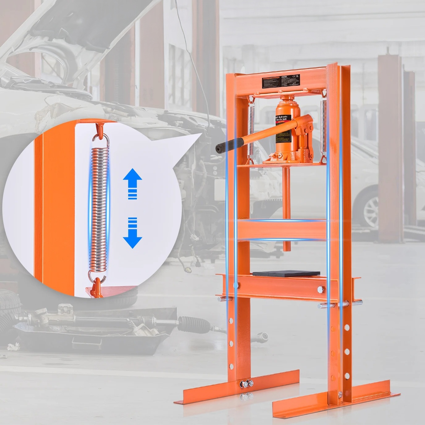 ⭐ Тверда гідравлічна майстерня прес 6 тонн - підлога, з плиткою тиску, регульованою висотою (від 55 до 250 мм) та запобіжним клапаном - ідеально підходить для гаража, майстерні та автомобільної роботи ⭐