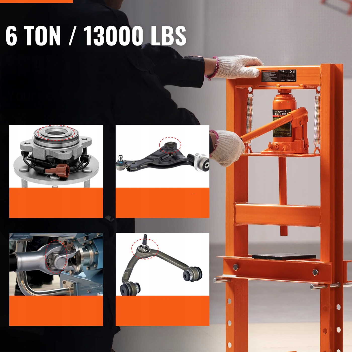 Цей гідравлічний прес забезпечує міцну потужність 6 тонн (6000 кг) , що дозволяє виконувати навіть найвибагливіші завдання. Він ідеально підходить для: