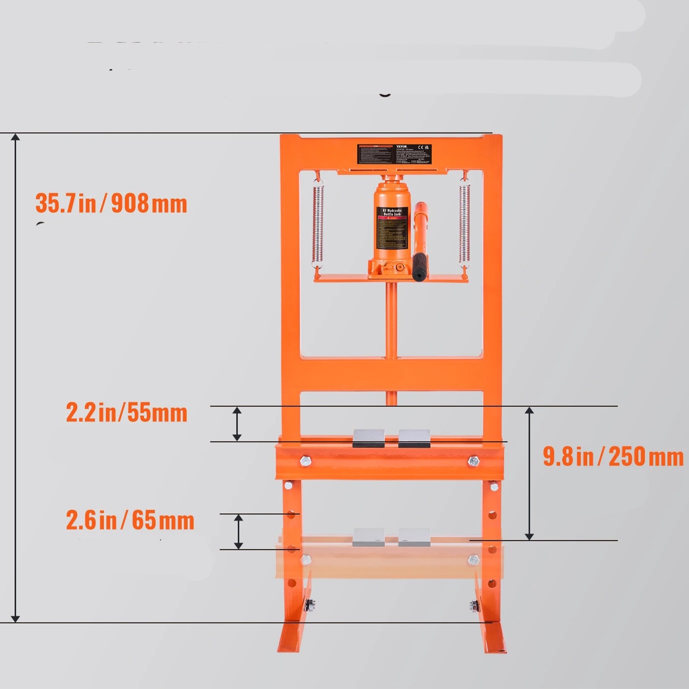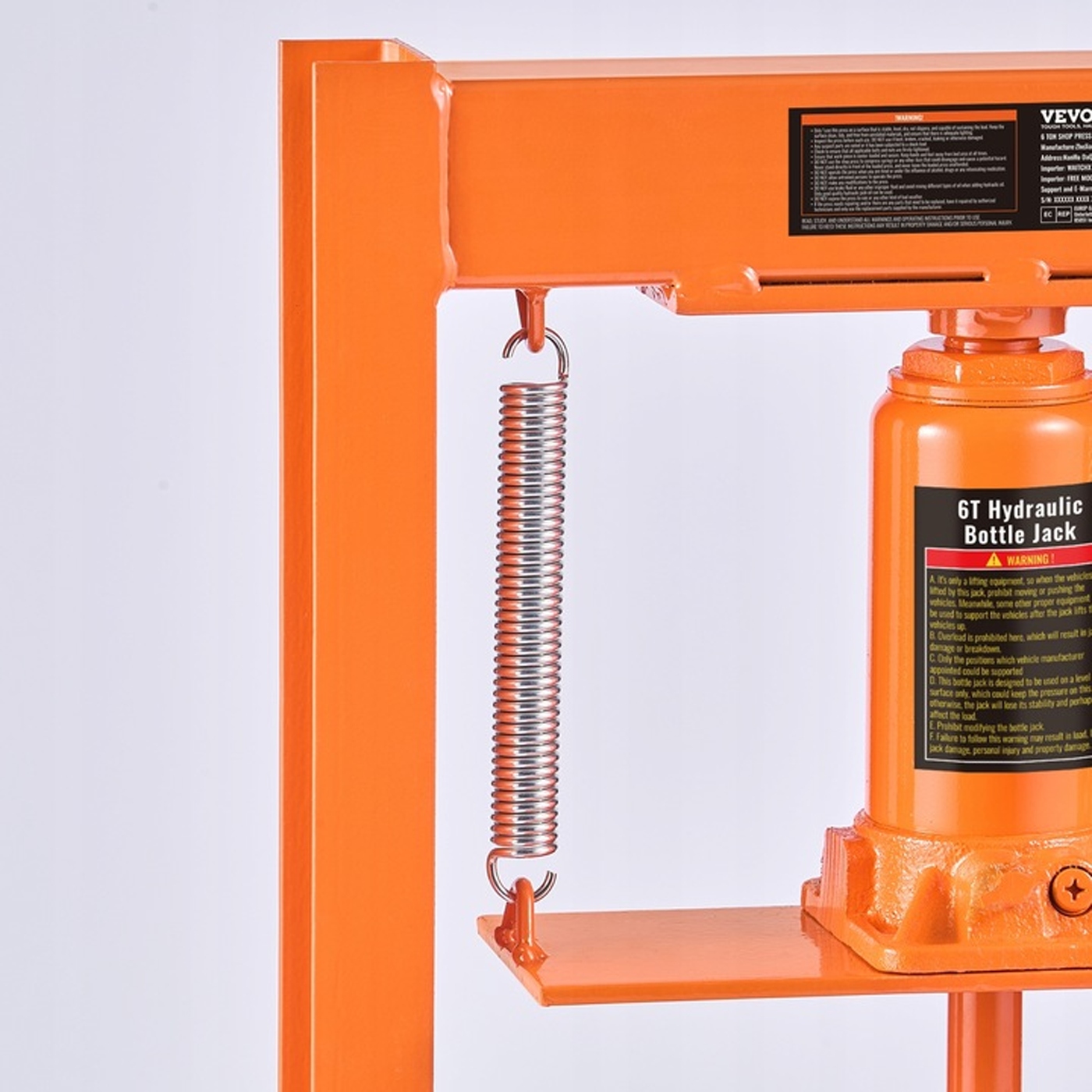Безпека - пріоритет. Преса оснащений гідравлічним підйомом із вбудованим надлишком клапана , який автоматично активується, коли тиск перевищує 6 тонн , таким чином запобігаючи перевантаженню та пошкодженню пристрою. Стійка H форма рамки, виготовлена з міцної вуглецевої сталі 2,5 мм (0,1 дюйма) , забезпечує певну основу, яка залишається стабільною під час використання. Весь покритий корозійним стійким порошком обробкою , що гарантує довговічність та легкість обслуговування.