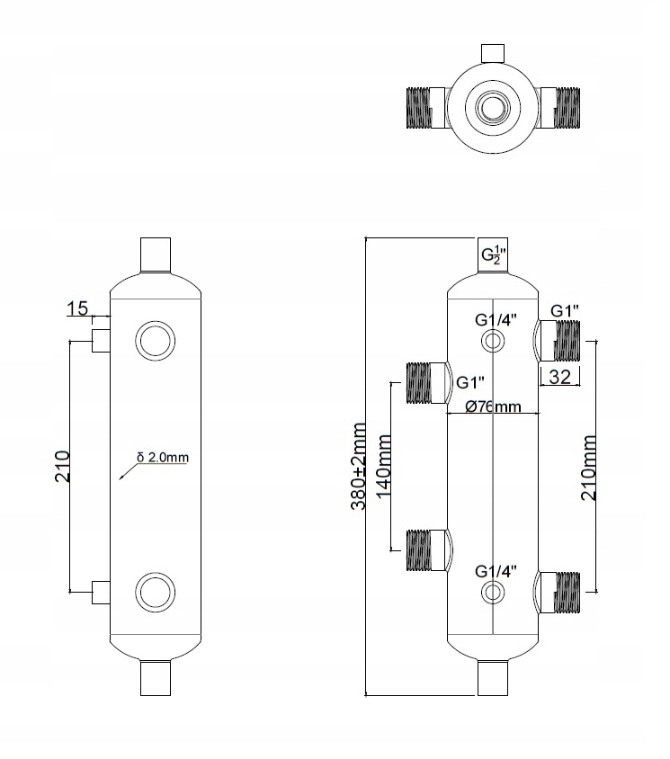 Гідравлічна муфта 1" 2 виходи, вентиляційний клапан, термометр, центральне опалення 60кВт