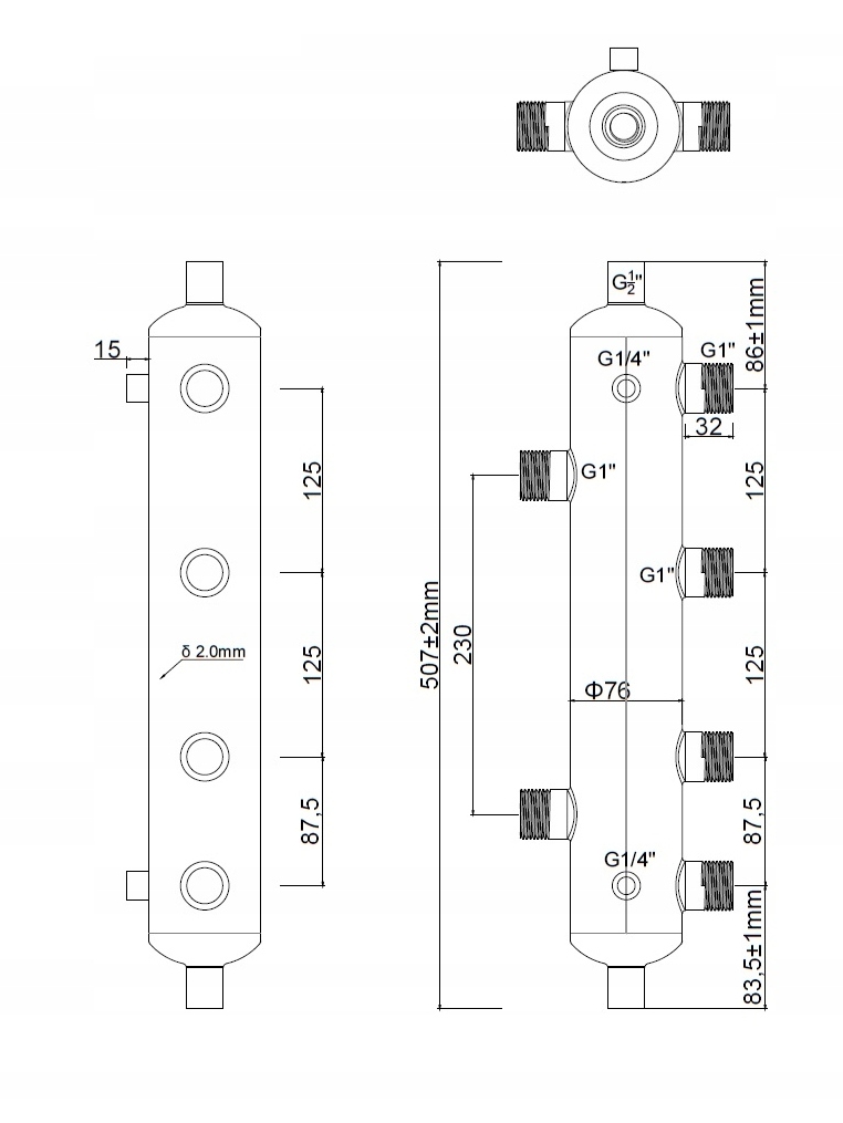 Гідравлічна муфта 1" 4 виходи, вентиляційний отвір, манометр 80 кВт для печі центрального опалення з відновлюваної енергії