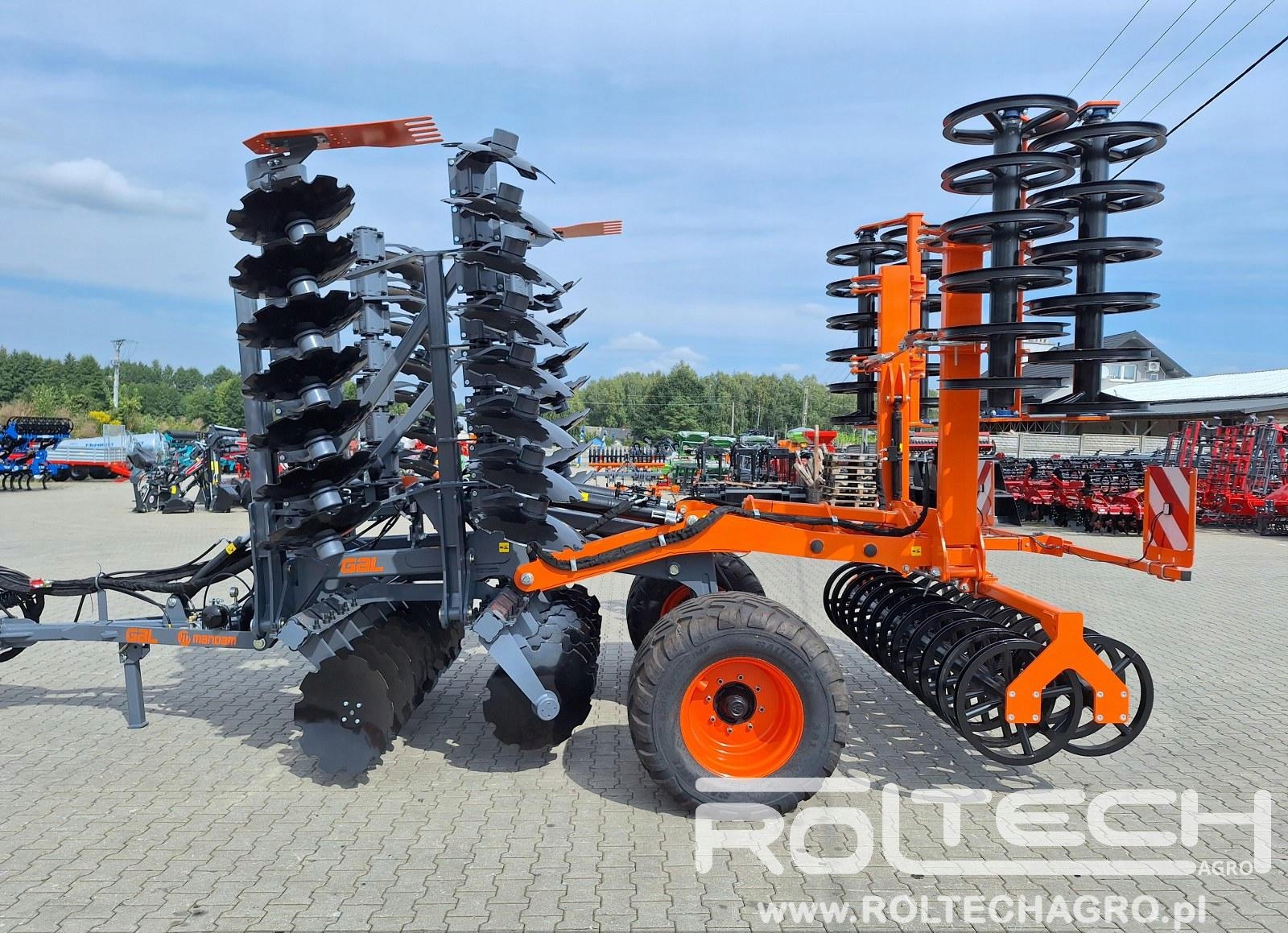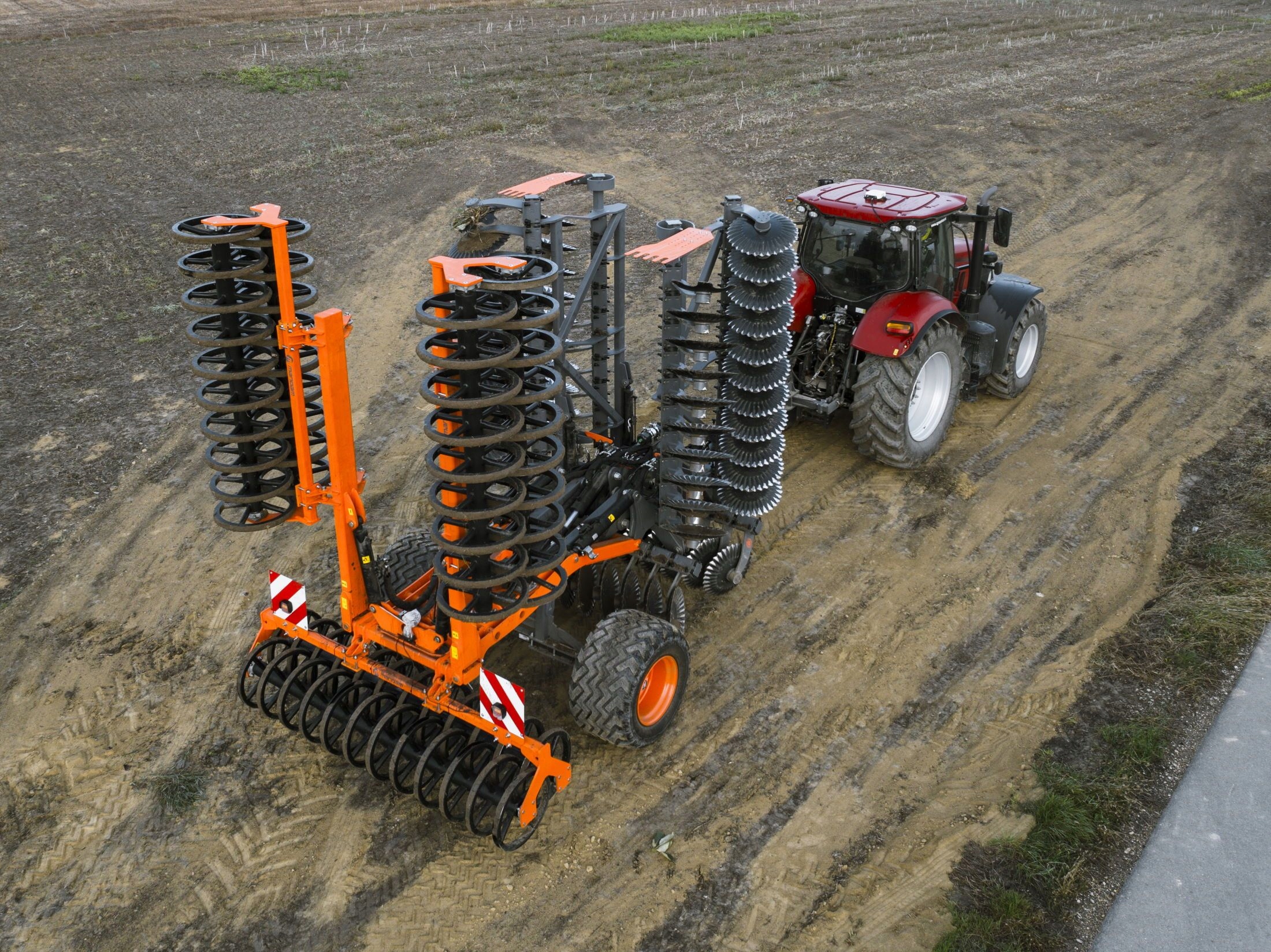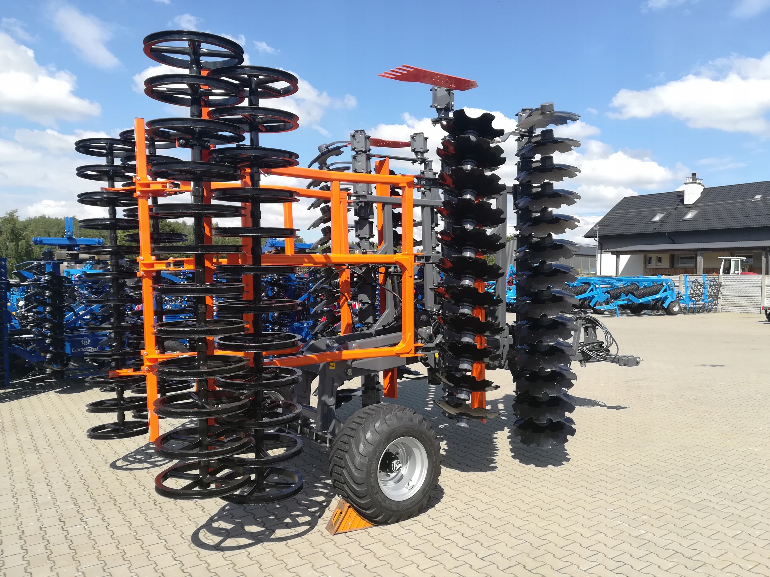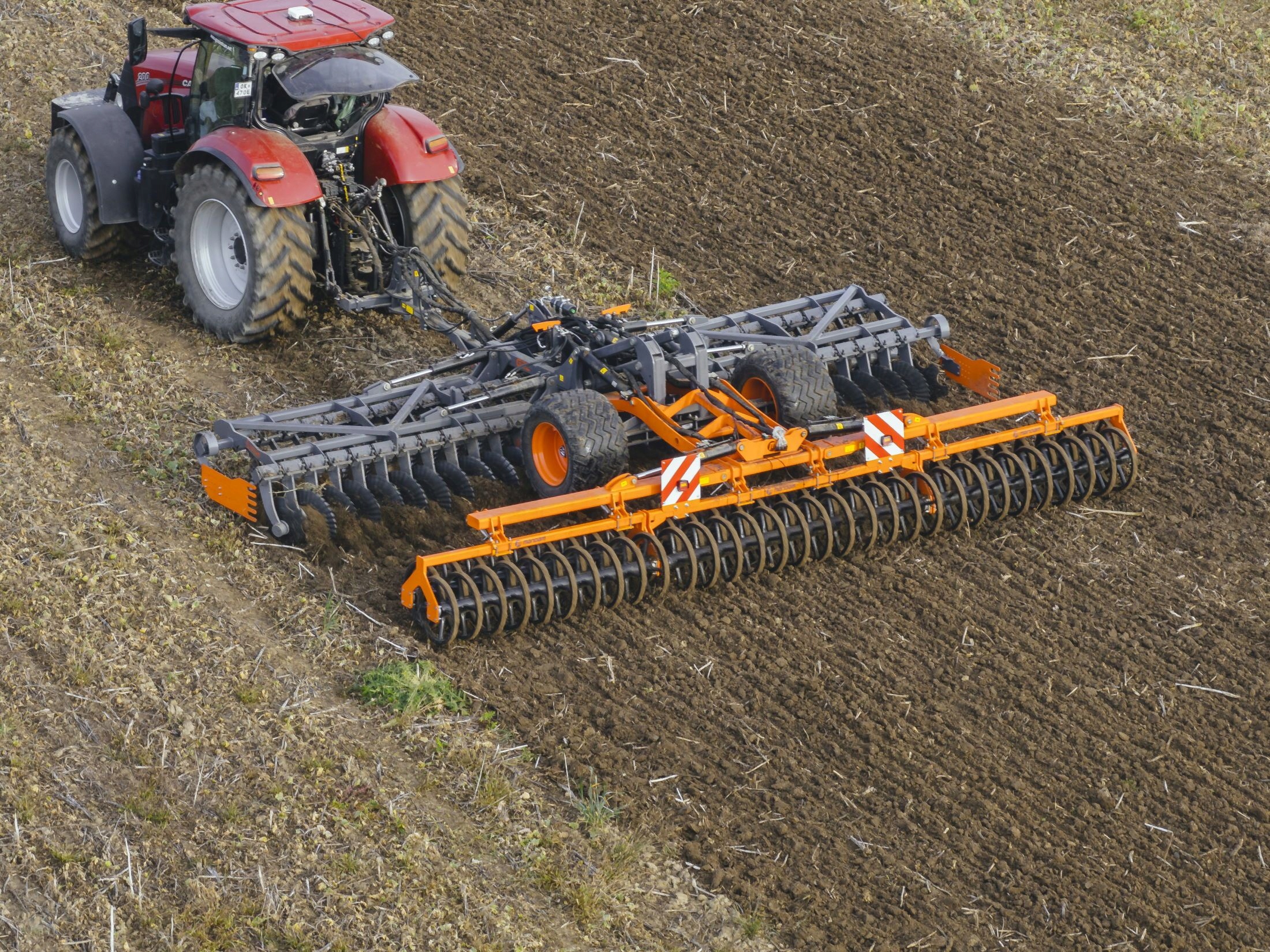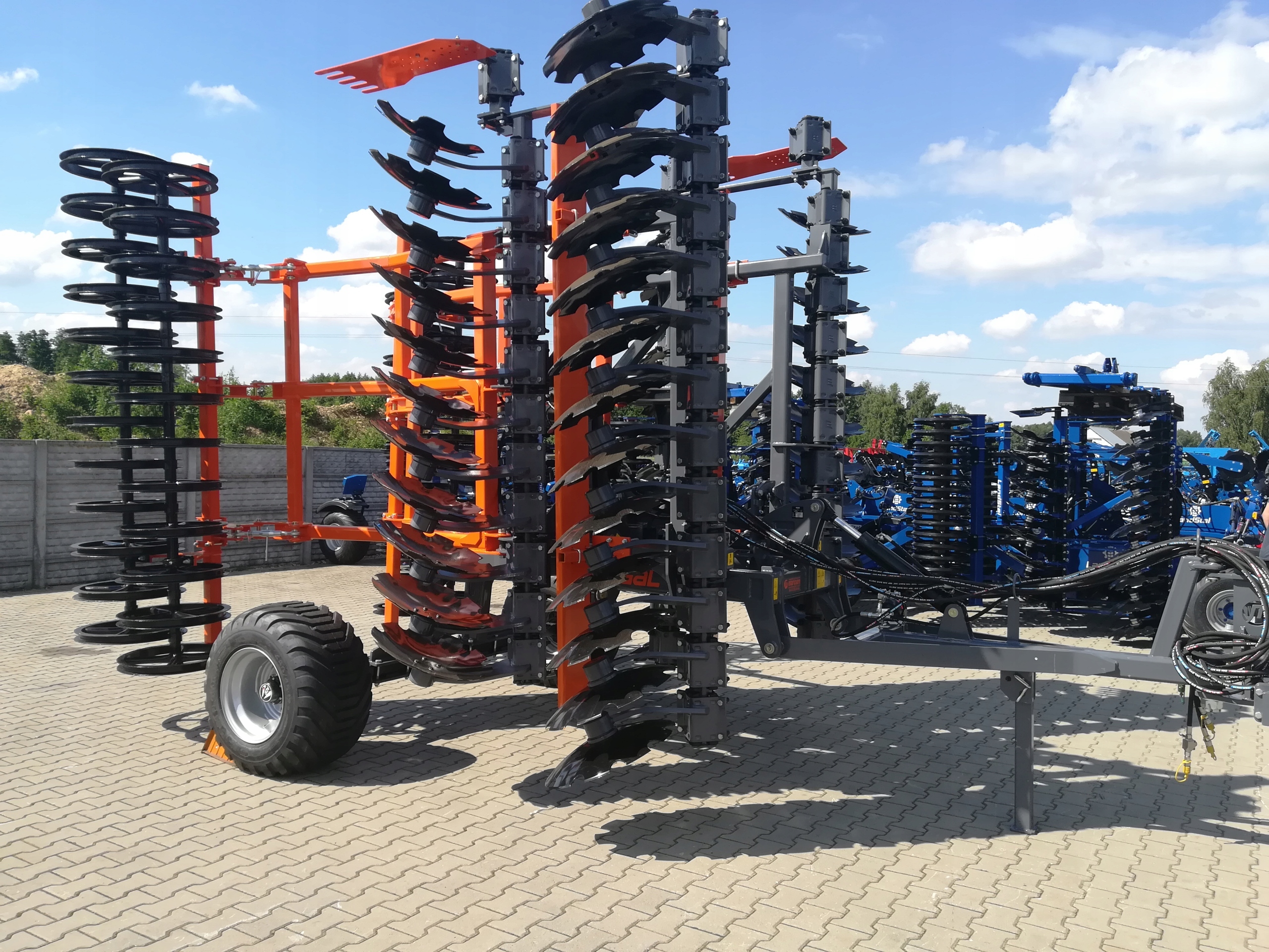 - Це розташування шасі, яке піднято під час роботи над середньою рамкою машини, дозволяє виключити вібрацію, стрибки та вібрації, що передаються з трактора до джгута диска.