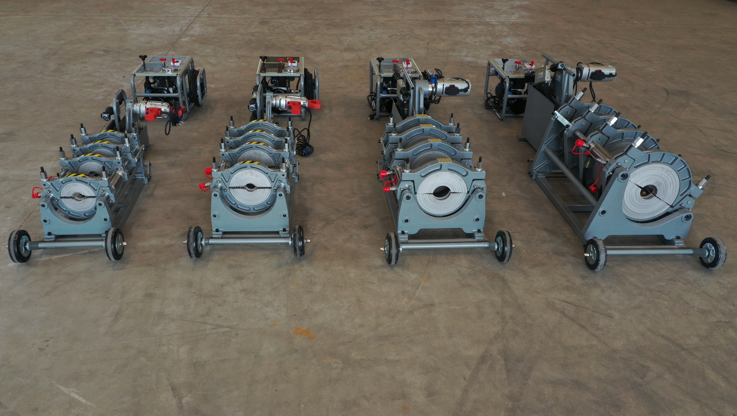 - зварювальний апарат оснащений комплектом перехідних кілець, що дозволяє зварювати труби діаметрів: fi160 fi140 fi125 fi110 fi90 fi75 fi63 ,fi50