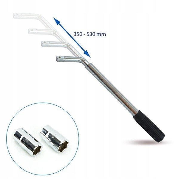 - Телескопічний колісний ключ: Два змінних ковпачки (17/19 мм і 21/23 мм)