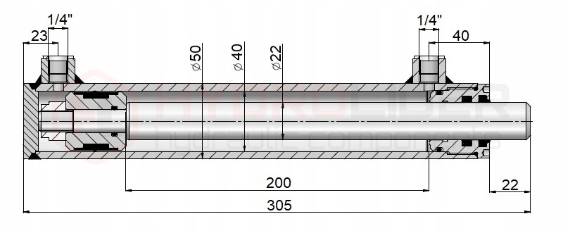 ГІДРАВЛІЧНИЙ ЦИЛІНДР 40/22/200 Л: 305