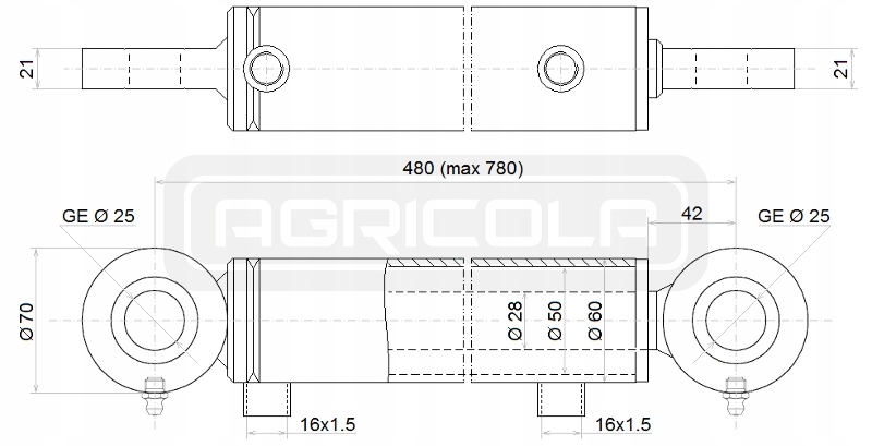 - Діаметр поршня (ROD): 28 мм 25 мм