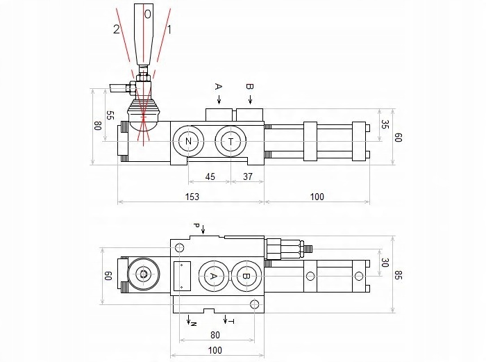 - Ports 1 and 2, internal thread in the body: BSP 1/8 "