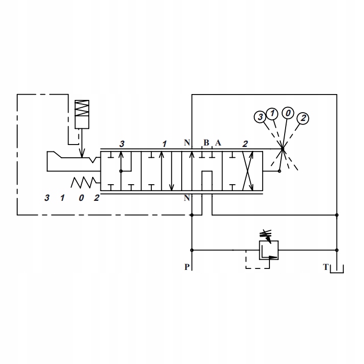 Клапан вивільнення важеля з робочого положення до нейтрального положення, встановленого на 70 бар, можливість незалежного коригування в діапазоні 70 - 140 бар.