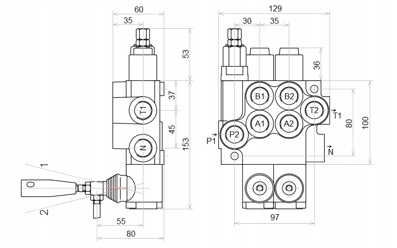 - Блок живлення від насоса (P1, P2): BSP 1/2 'Внутрішня нитка 3/8' '