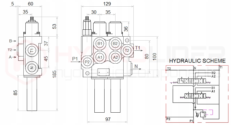 - Гідравлічна дистриб'ютор 2 40L 6/2 Третій розділ (Gripper, Crocodile)