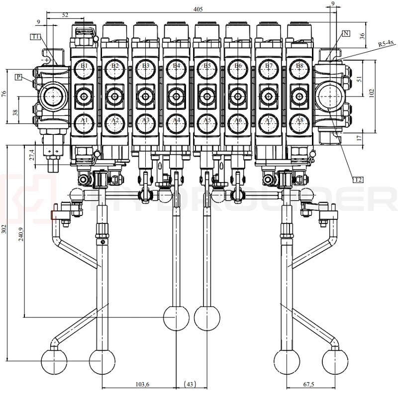 Модульний розділ гідравлічного розповсюджувача 8, контрольований двома важелями та двома джойстиками, включаючи кожен джойстик, підтримує 3 розділи. Рекомендується для контролю лісових причепів, кранів, сільськогосподарських та фруктових машин. Використовується, серед інших у виробників: Вараньський, гідро-швидкий, більш Маскінер, пальми, BMF, Kellfri.