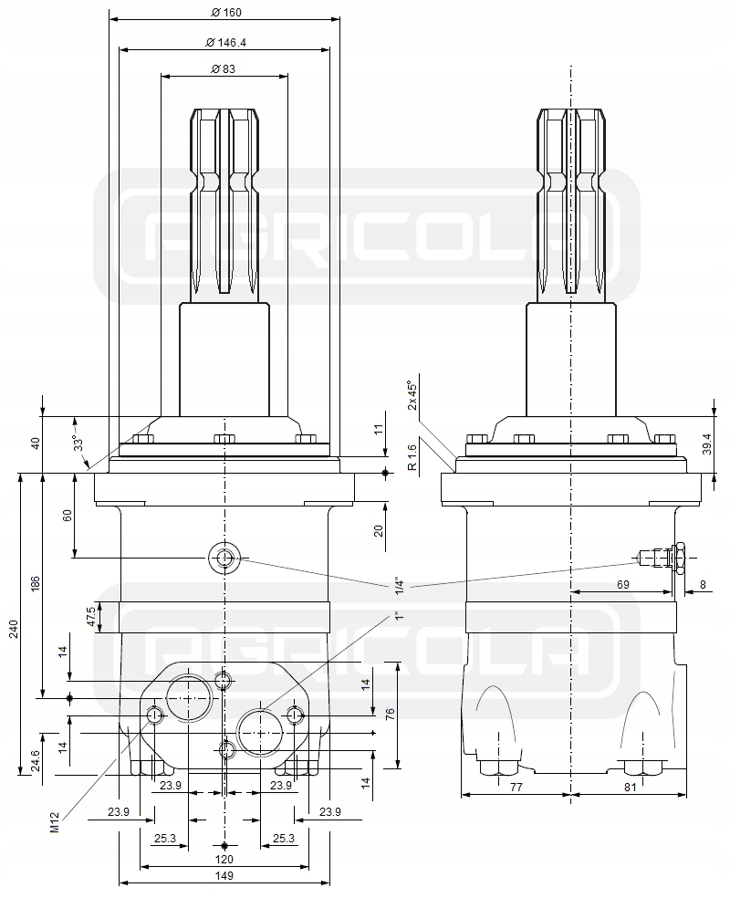 Гідравлічний двигун BMV 630 48KW 320OBR/MIN PTO ROLLER 50 мм Гідролід
