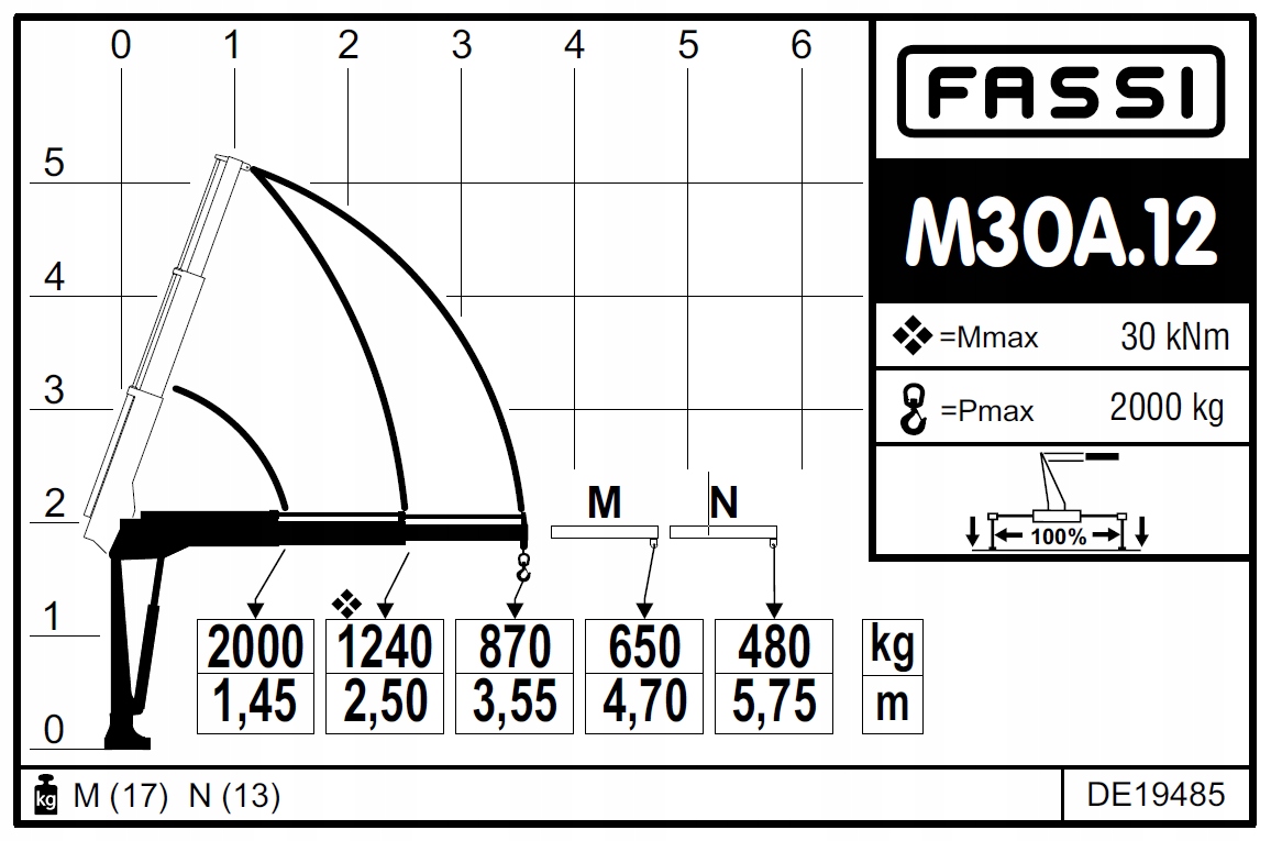 Кран FASSI M30A.12 розроблено, виготовлено та протестовано відповідно до чинного стандарту якості EN 12999 і позначено знаком CE символ, який посилається на вимоги, викладені в директиві Європейського Союзу. Розрахунки на міцність відповідають рекомендаціям стандарту інтенсивності роботи DIN 15018