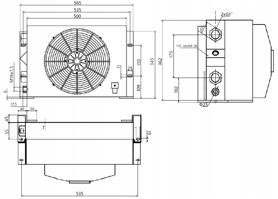 Гідравлічний охолоджувач масла з вентилятором та термостатом