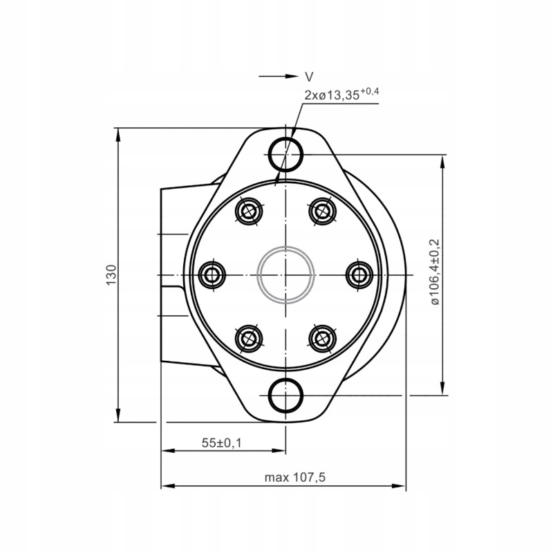 - Кольцо: овальне з 2 отворами ø13,35 мм з відстанню ø106,4 мм, діаметр пілотного елемента ø82,5 мм