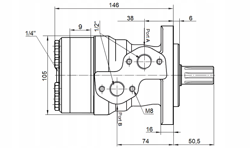 ГІДРАВЛІЧНИЙ МОТОР BMR OMP SMS 50 6,4 кВт ФРЕЗЕРОВАНИЙ ВАЛ ГІДРОЛІДЕР
