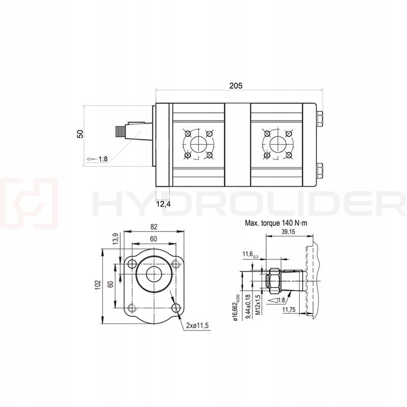 ГІДРАВЛІЧНИЙ НАСОС 2-СЕКЦІЙНИЙ, ГРУПА 2, ПРАВИЙ, 16/14см3, продуктивність: 24/21 л/хв.