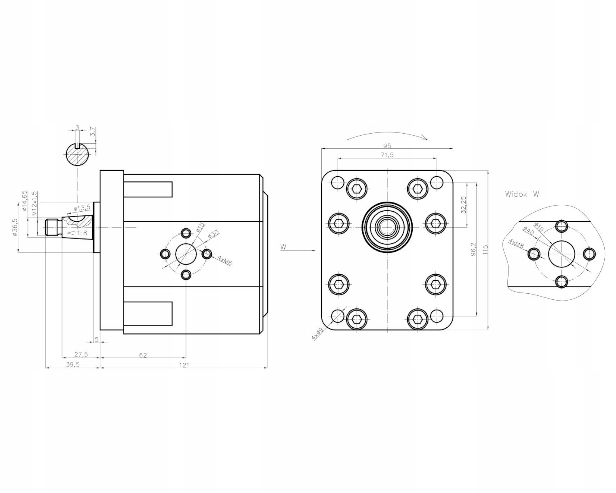 Вхід: відкритий. Φ19 + 4xM8 / Φ39.7 - алмаз