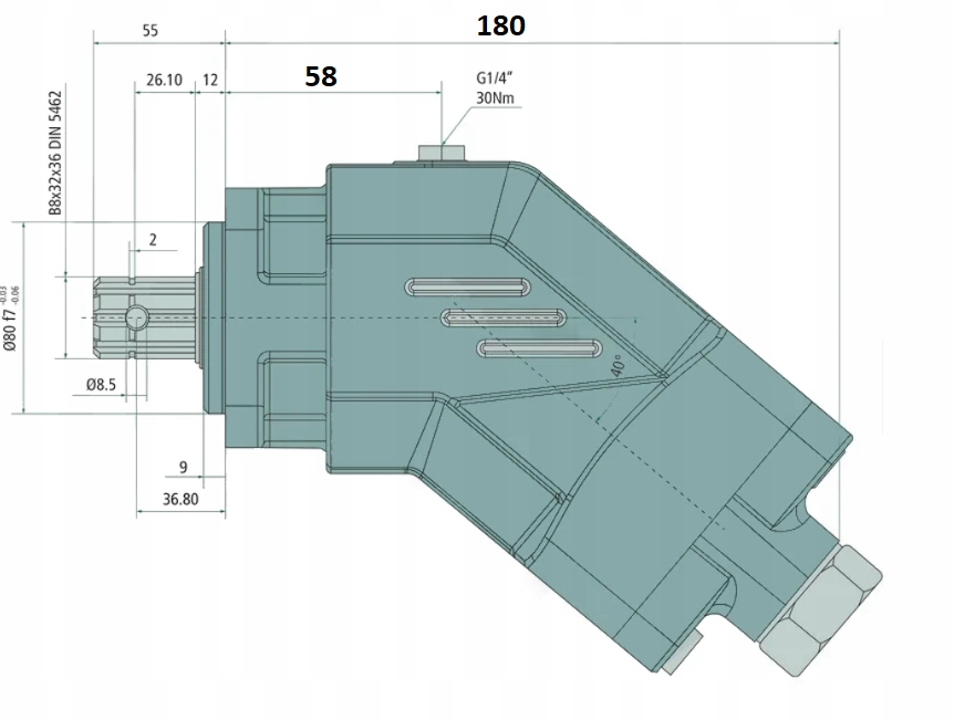 Підключення насоса: DIN ISO з фланцем із 4 отворами та шліцьовим валом B8x32x36, підходить для всіх навісних пристроїв ВВП.