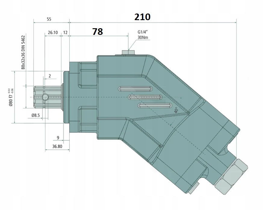 Підключення насоса: DIN ISO з фланцем із 4 отворами та шліцьовим валом B8x32x36, підходить для всіх пристроїв ВВП.