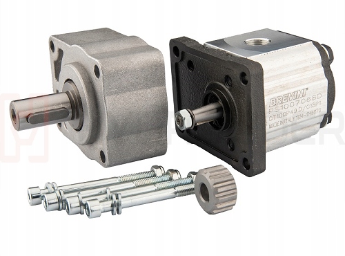 ГІДРАВЛІЧНИЙ НАСОС ПРАВИЙ GR1 4,70 см3 7,05 л + ОПОРА ПІДШИПНИКА + ЗЧЕПЛЕННЯ