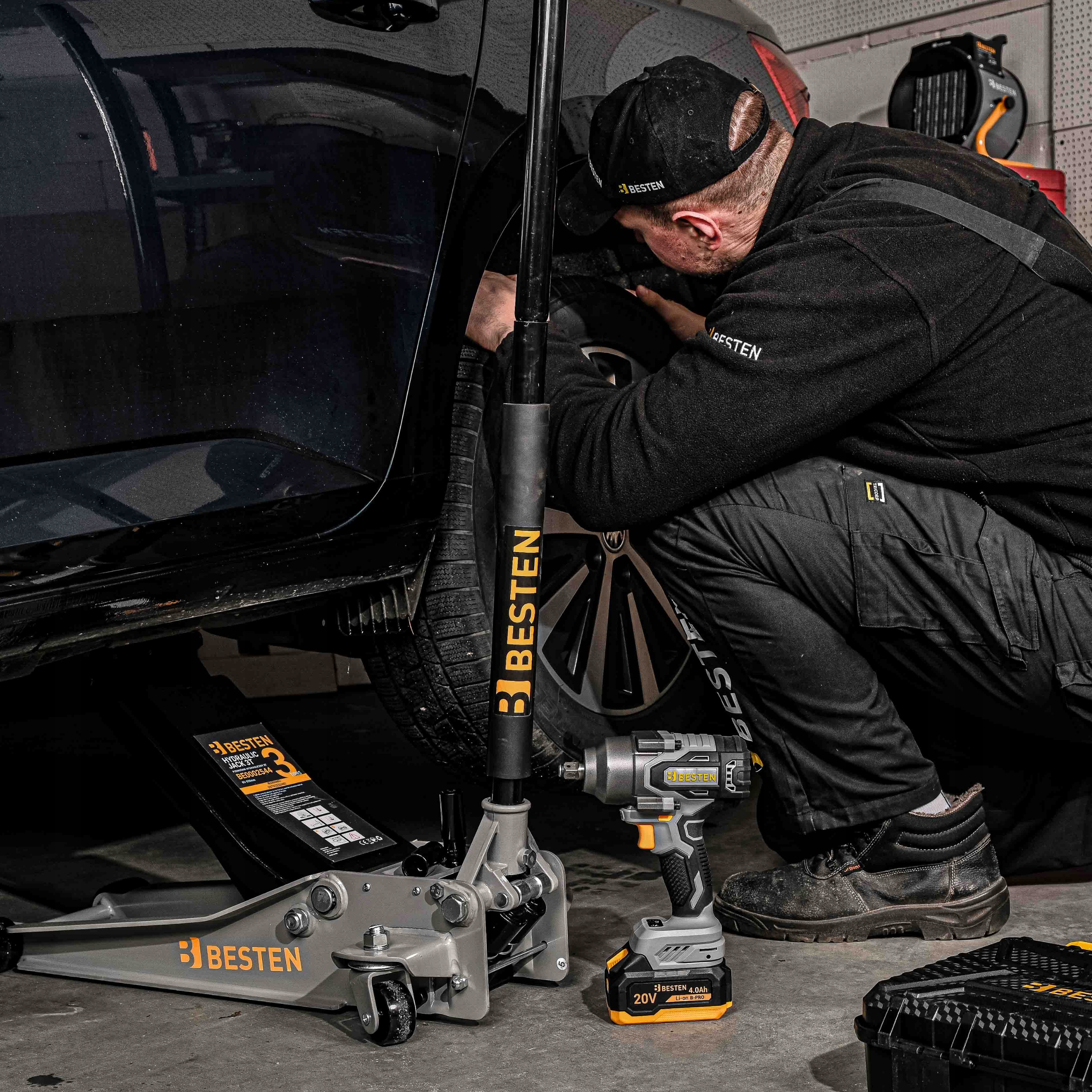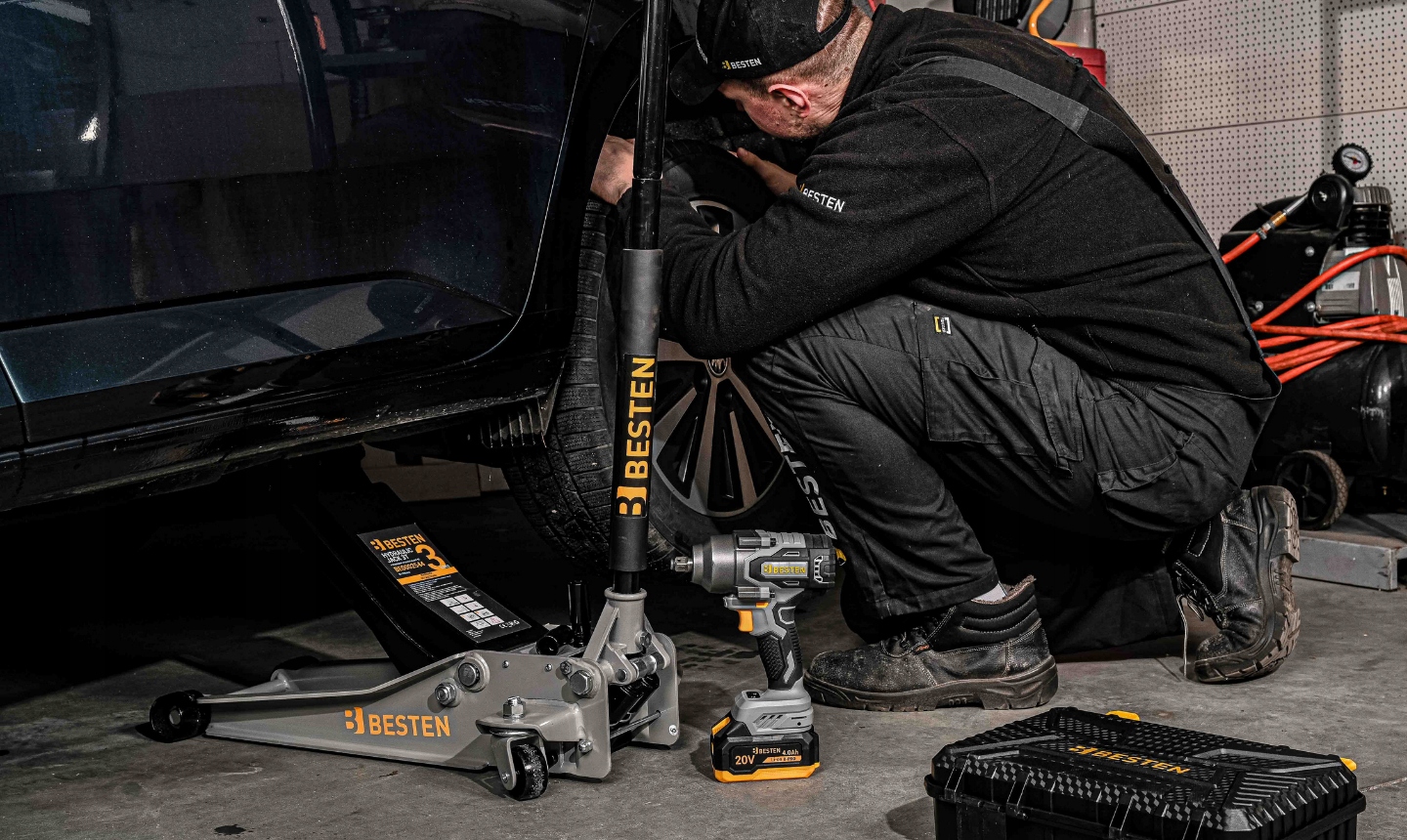 Домкрат BESTEN дозволяє безпечно виконувати більшість робіт на автомобілі - як у домашньому гаражі, так і в професійній майстерні: