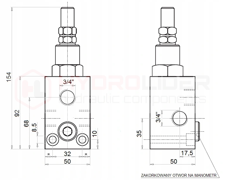 - Кількість гідравлічних отворів у корпусі: 3 (+ вихід манометра)
