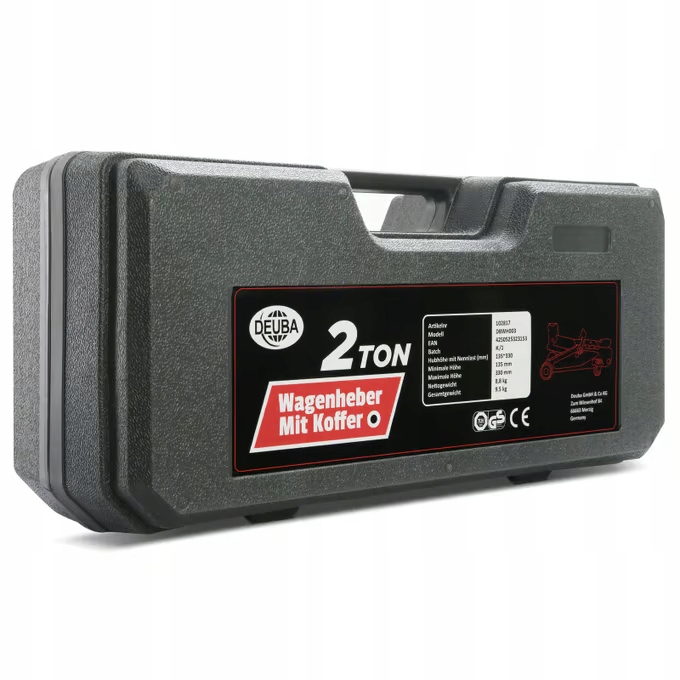 Завдяки максимальній висоті підйому 330 мм і вантажопідйомності 2 тонни, це ідеальний інструмент для підйому та опускання легкових автомобілів і сільськогосподарської техніки. Велика опорна пластина, що обертається, дозволяє легко піднімати й опускати. Включена гумова накладка захищає транспортний засіб під час підйому та мінімізує ризик ковзання. Висота опускання плавно регулюється. Коли підйомник не використовується, його можна зберігати в транспортному футлярі.