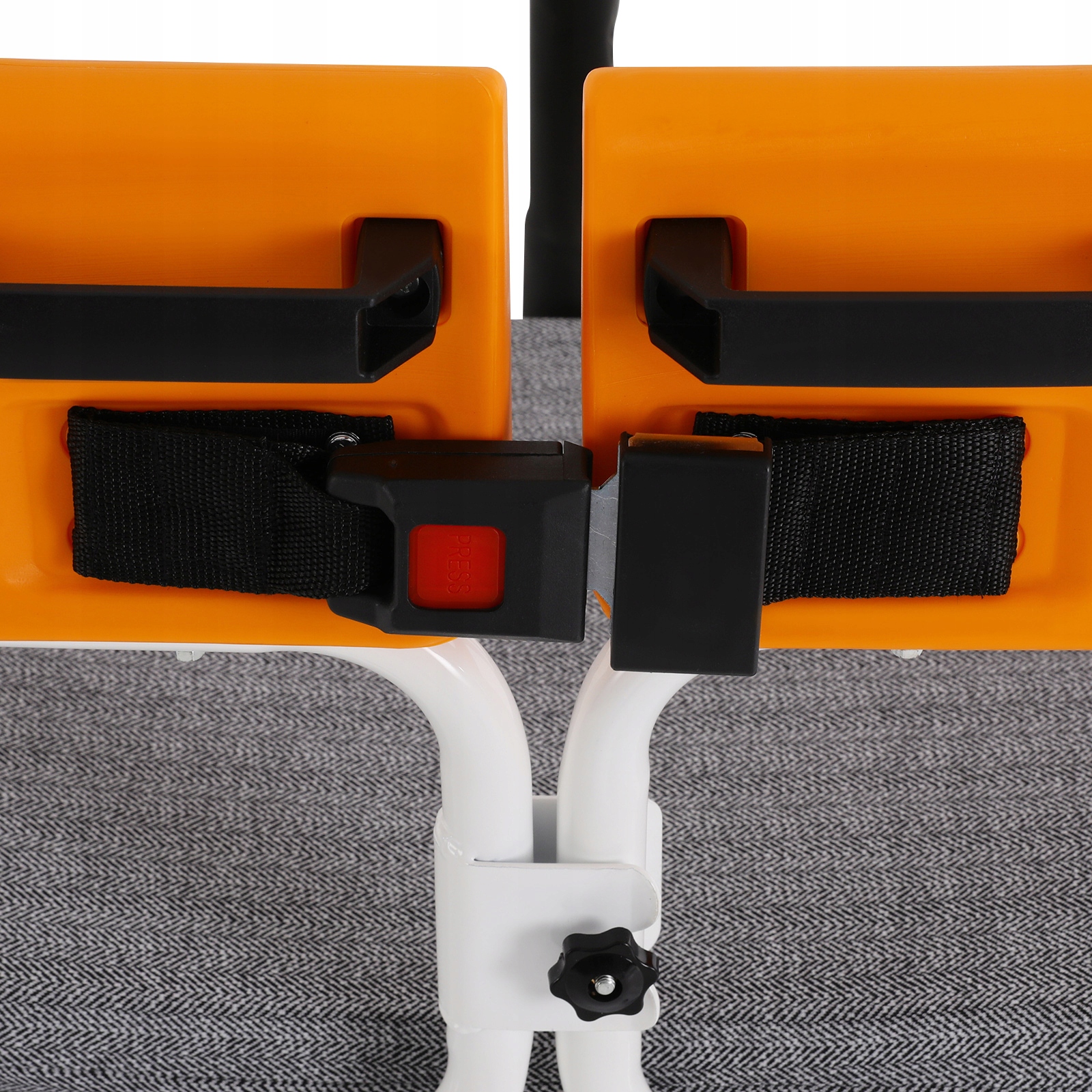 Продуманий дизайн: Окрема спинка з подвійною конструкцією (застібка безпеки та гвинтова ручка) додатково забезпечує стабільність і безпеку сидіння від падінь.