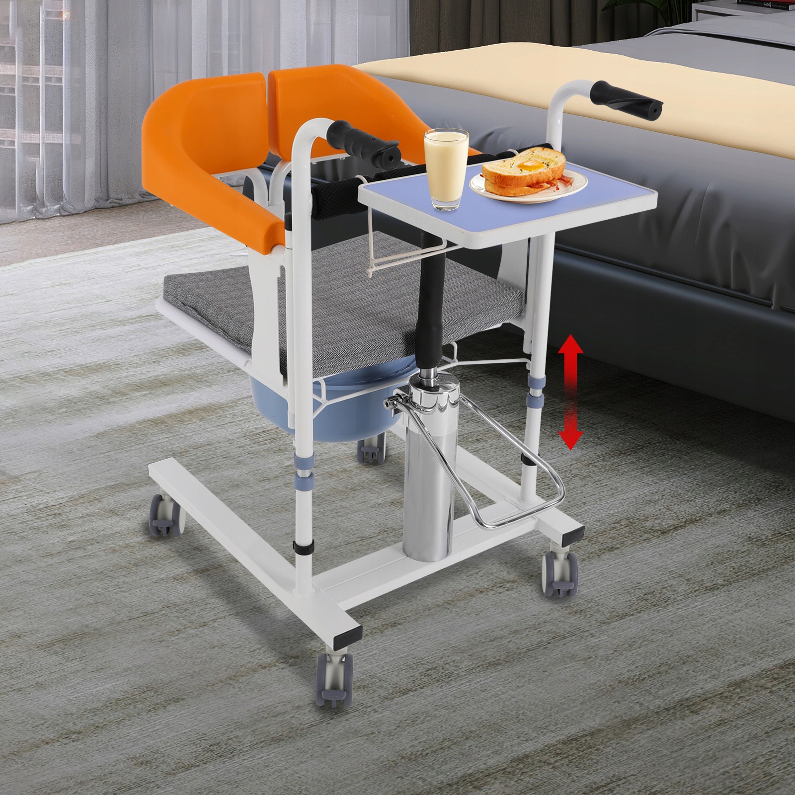 ◾Наше гідравлічне інвалідне крісло з підйомником для пацієнта забезпечує вашу безпеку та комфорт! Стабільний гідравлічний насос, добре продуманий унітаз і м'яка подушка роблять кожне перенесення легким і заспокійливим. Висоту можна вільно регулювати, а спинку можна розгорнути на 180 градусів, забезпечуючи пацієнтам глибокі враження! Удома чи в лікарні цей інвалідний візок може дбайливо доглядати за друзями з обмеженою рухливістю, завдяки чому вони почуваються так само комфортно, як сидячи на хмарах.