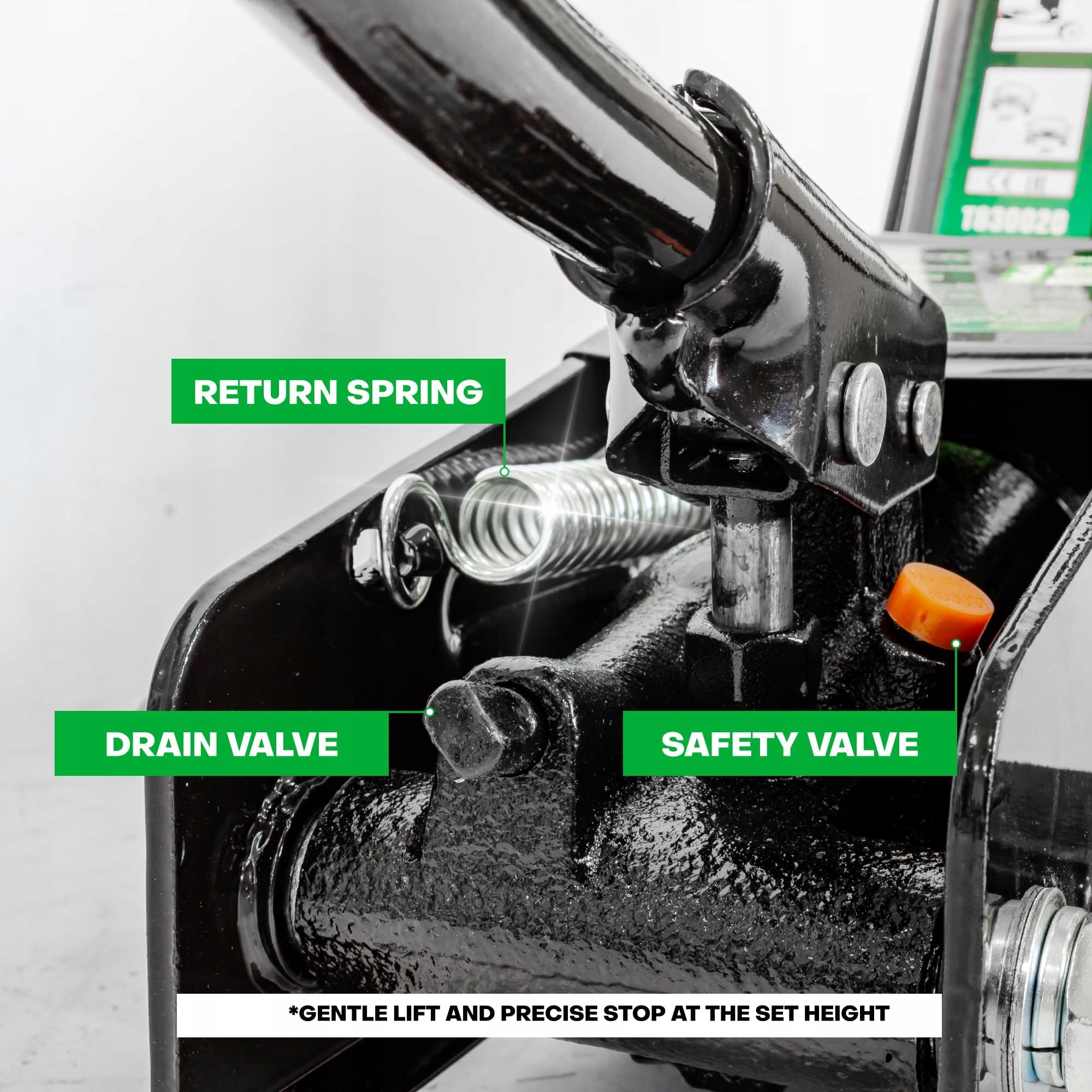 Гідравлічний підйомник ROCKFORCE оснащений зручною прогумованою ручкою, яка не вислизає з руки навіть після інтенсивного використання. Завдяки запобіжному клапану масло не витікає несподівано назад, що зводить до мінімуму ризик неконтрольованого спуску автомобіля. Хромований поршневий шток стійкий до корозії та стирання, тому пристрій залишається повністю працездатним роками, незалежно від умов, в яких він працює. Це інвестиція, яка швидко окупається, полегшуючи самостійний ремонт і економлячи час, необхідний для відвідування сервісного центру.