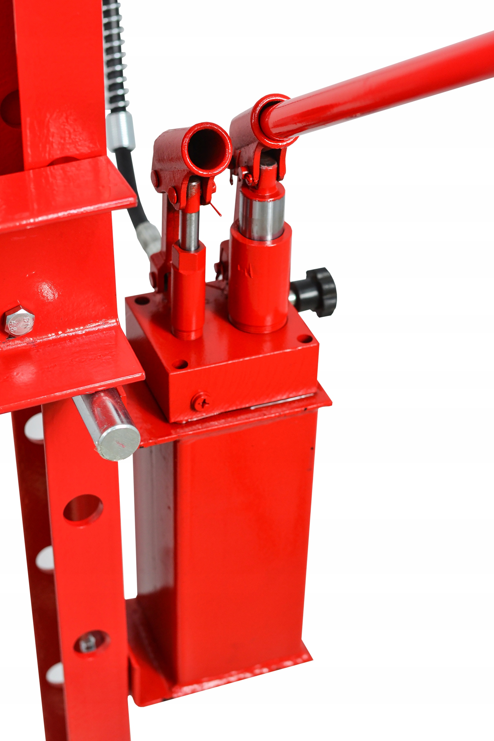 Міцний продукт, який прослужить багато років. Міцна, більш товста рама робить прес надійним і стійким, прес оснащений всім необхідним для роботи, чітким і точним манометром, шлангами з швидкоз'ємними з'єднаннями, насосом, заповненим маслом, і приводом.