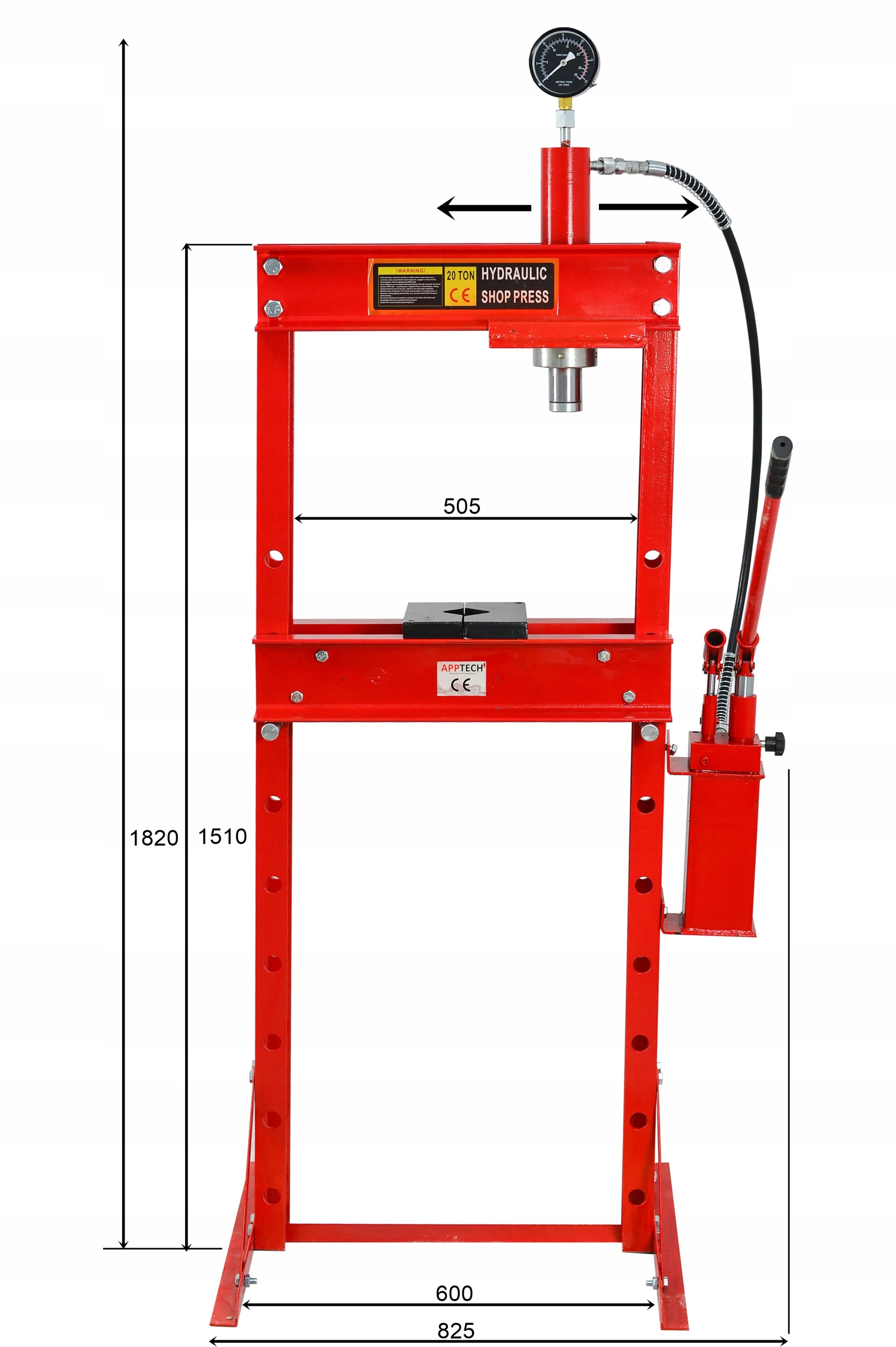 Наш прилад працює в діапазоні 0-1035 мм і має 9 ступенів регулювання робочої стільниці, щоб ви могли легко налаштувати стільницю відповідно до своїх потреб. Прес має тиск 20T