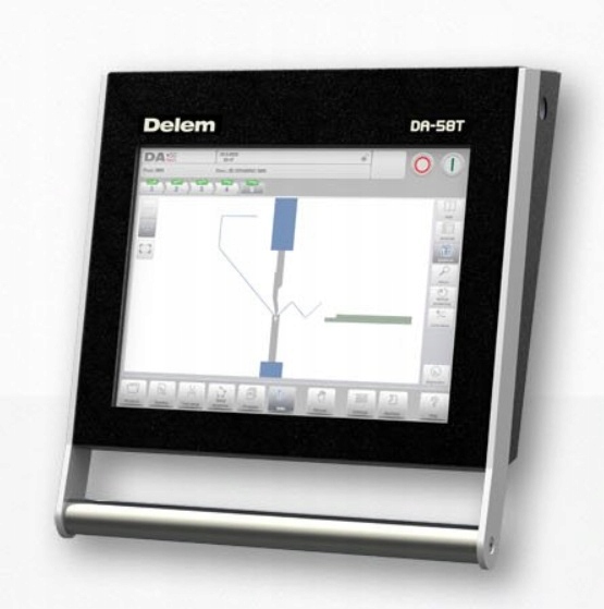 DA-58T — це сучасне повне 2D-графічне рішення для керування синхронізованим пресом. Пропонує найпростіше програмування ЧПК на основі графічного сенсорного інтерфейсу користувача Delem, включаючи автоматичний розрахунок послідовності згинання та виявлення зіткнень.