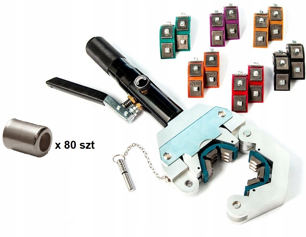 - 80 наконечників для всіх типів гумових шлангів (4 види для тонких стінні шланги та 4 типи для товстостінних шлангів)