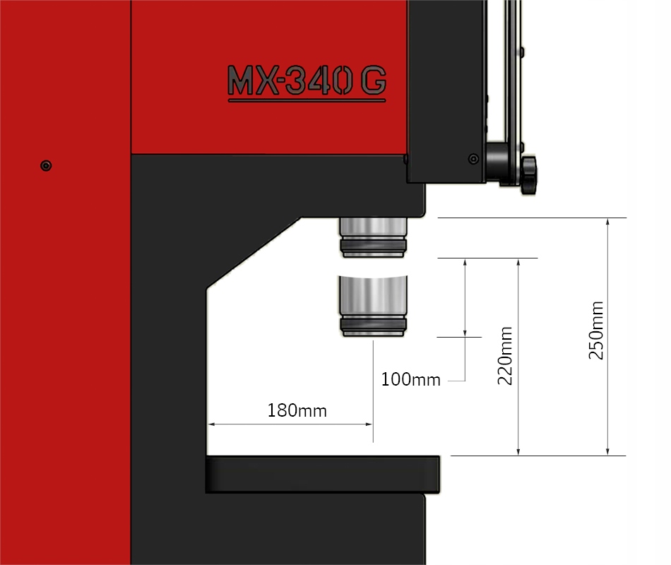 - Відстань між поршнем у верхньому положенні та столом: 220 мм