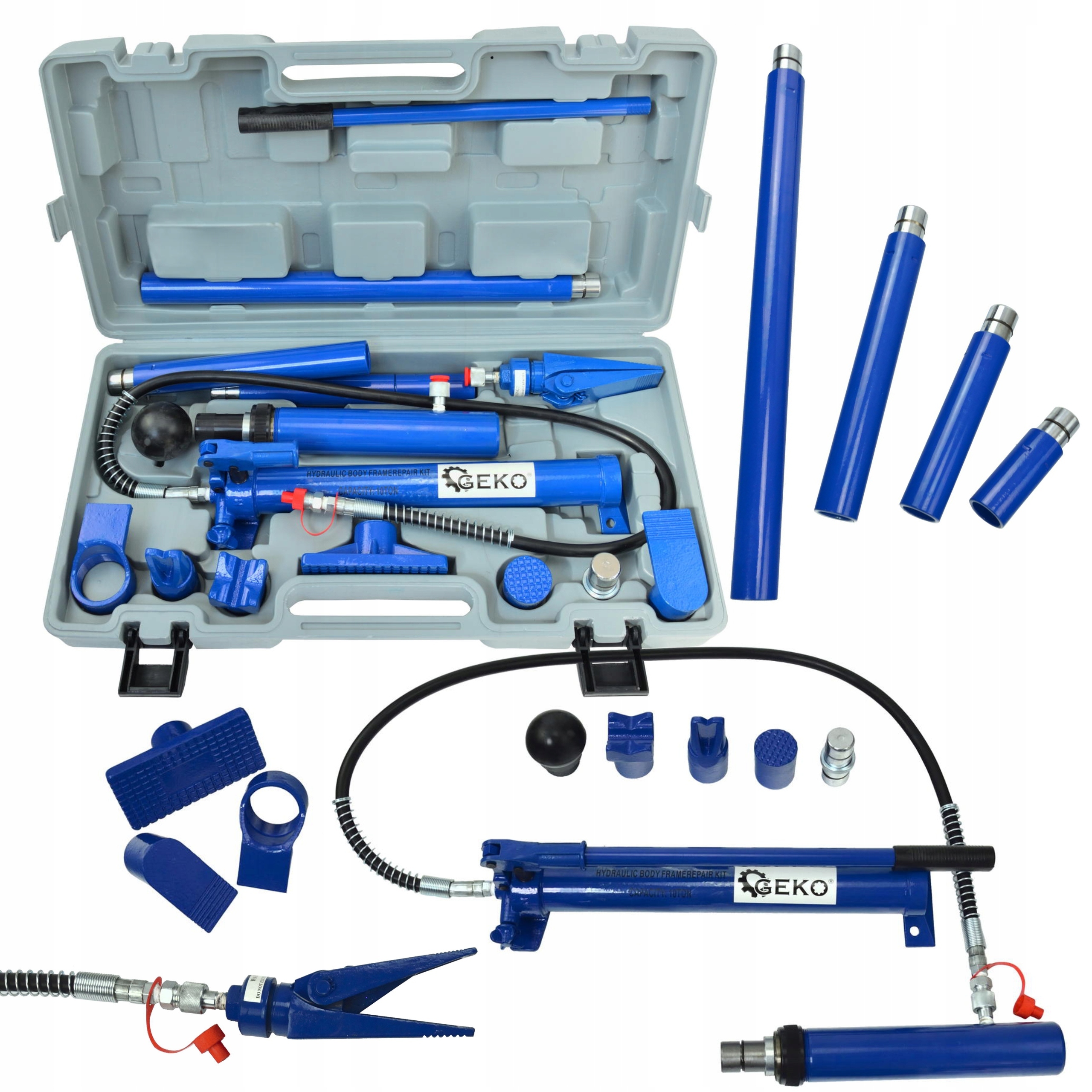 Набір професійних 10-тонних розкидачів у валізі. Набір оснащений ефективним гідравлічним насосом, який дозволяє виконувати наступні завдання: підйом, витягування, згинання, випрямлення та розкладання.