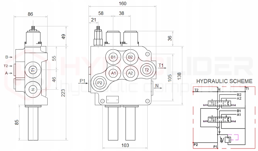 ДВОСЕКЦІЙНИЙ ГІДРАВЛІЧНИЙ РОЗПОДІЛЬНИК:
