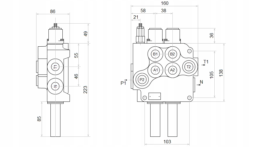 - 2-секційний гідравлічний розподільник 80 л/хв