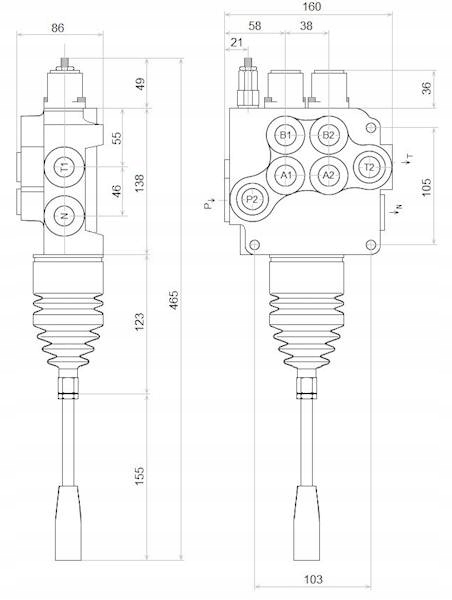 2-СЕКЦІЙНИЙ ГІДРАВЛІЧНИЙ РОЗПОДІЛЬНИК P80 З НАСОСОМ, ЩО КЕРУЄТЬСЯ ВБУДОВАНИМ ДЖОЙСТИКОМ І ВАЖЕЛЕМ