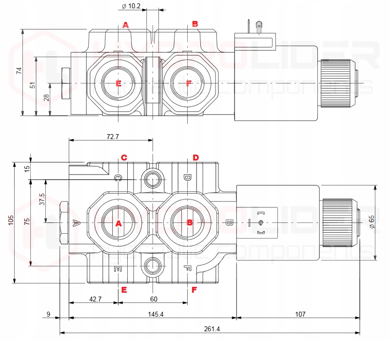 Адаптований до відкритих систем із вільним потоком масла. Максимальний потік до 120 л/хв. Контроль односторонніх і двосторонніх циліндрів. Рекомендовано керувати розподільником за допомогою кабелів і джойстика.
