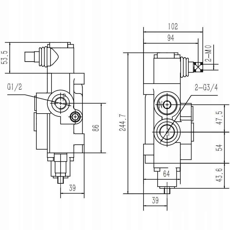Призначений для керування одно- або двостороннім циліндром. Він має вихід тиску N, необхідний для послідовних з’єднань або для встановлення розподільника як іншого в існуючій системі.