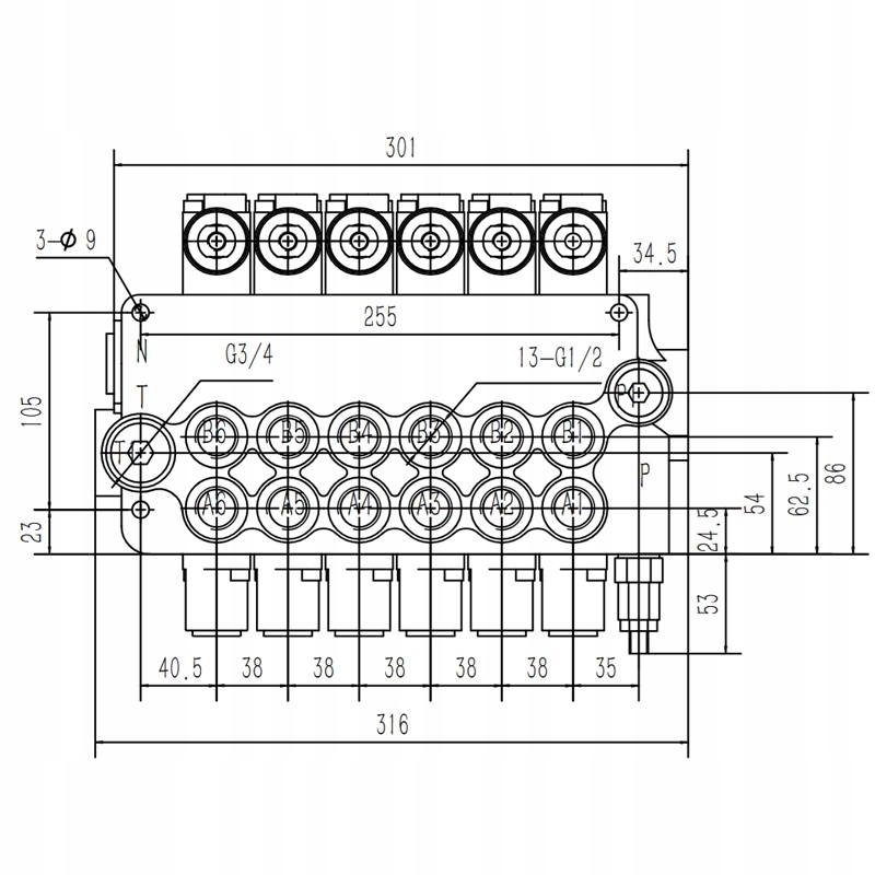 ГІДРАВЛІЧНИЙ РОЗПОДІЛЬНИК 6 СЕКЦІЙНИЙ
