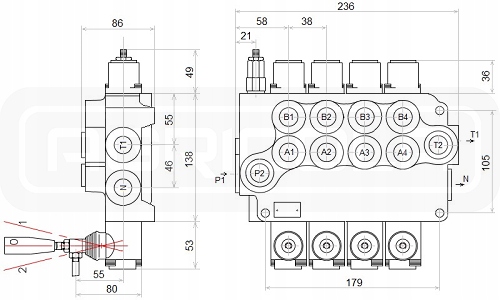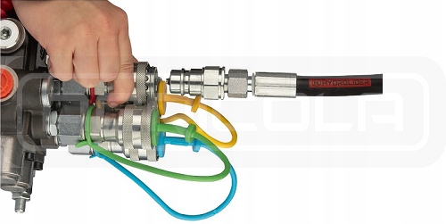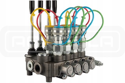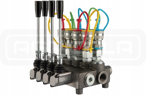 Розділ гідравлічного дистриб'ютора 4, оснащений дуже м'якими і злегка робочими швидкими муфтами, які не потребують великої міцності при відключенні проводів. Адаптовані до різних видів машин, таких як сільськогосподарські машини, трактори, розпилення, повороти, циклопи, навантажувачі HDS, будівельні машини, зарядні пристрої, екскаватори, підмітальні машини, промислові машини та інші гідравлічні пристрої управління. Технічний: