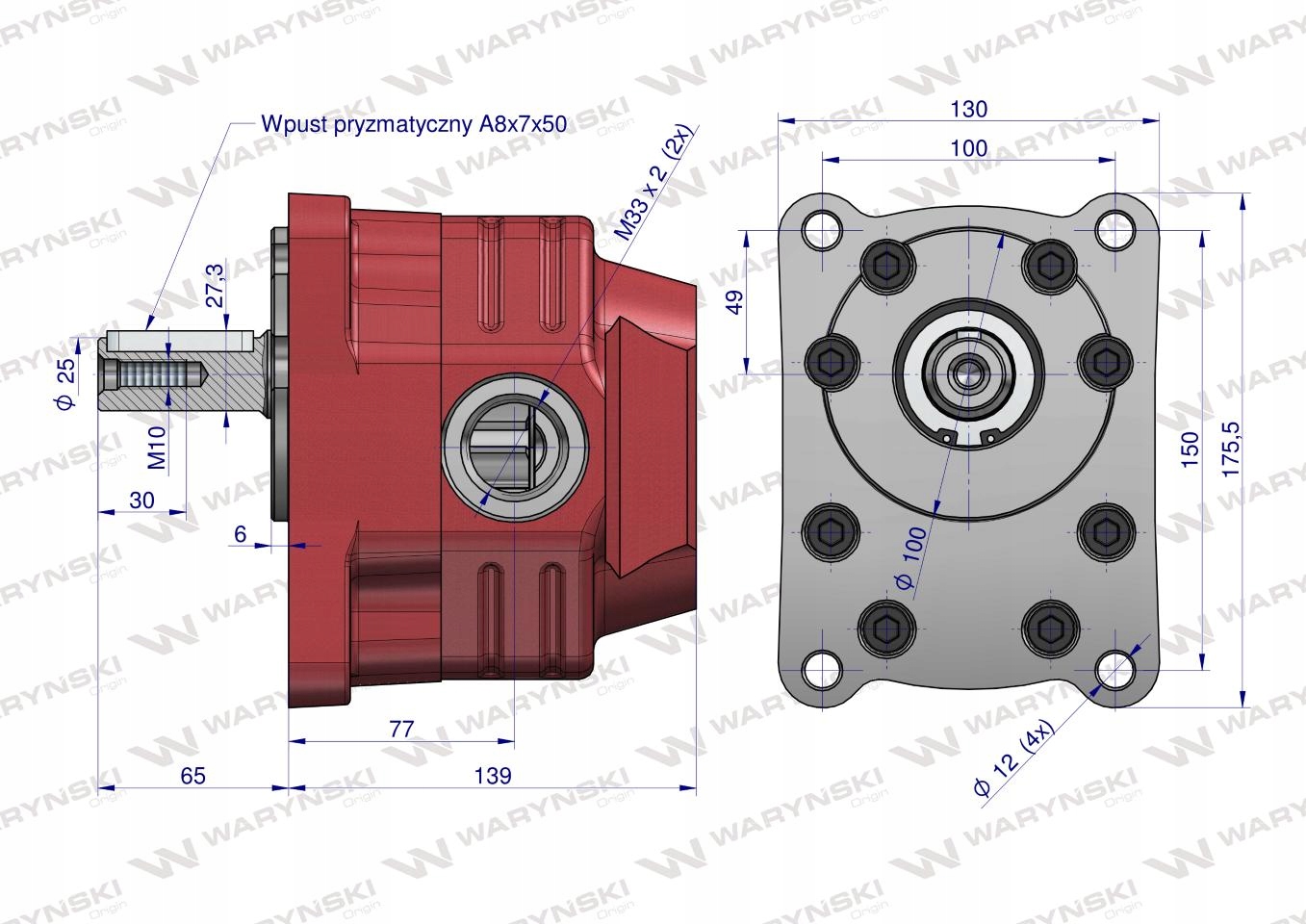 Гідравлічний шестеренчастий насос для Cyklop PZS-KZ-50P (праве обертання) 20Mpa в чавунному корпусі Waryński. Продуктивність гідравлічного насоса 52 дм3/хв при 1500 об/хв (56 дм3/хв при 1600 об/хв, 58 дм3/хв при 1650 об/хв). Гідравлічні насоси Waryński, завдяки своїм невеликим, компактним розмірам і компактній і міцній конструкції, широко використовуються в багатьох галузях промисловості, сільському господарстві та мобільній гідравліці. Наші насоси додатково укріплені чавунними кришками - це гарантує тривалу і безвідмовну роботу.