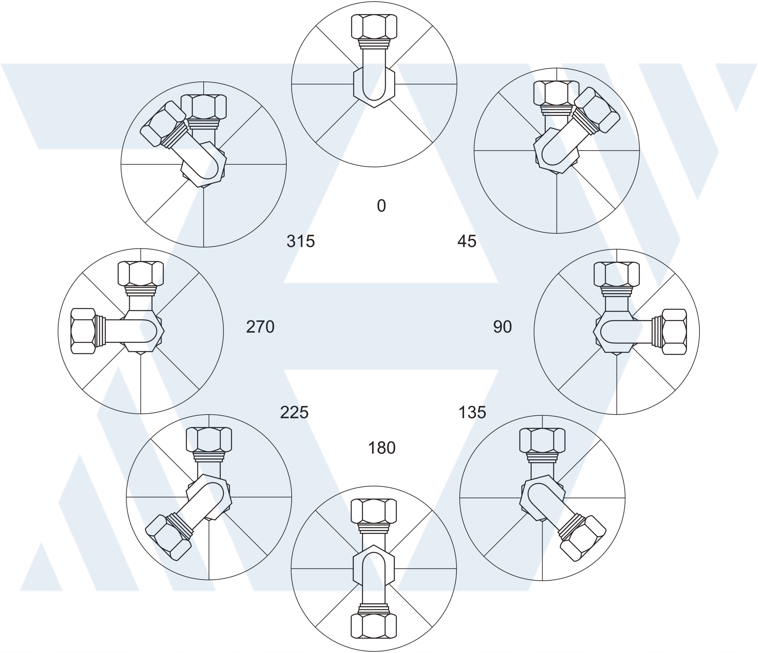 - кут скручування кінців, це стосується наступних типів кабелів: коліно:коліно, вушко : вушко, ліктьове вушко