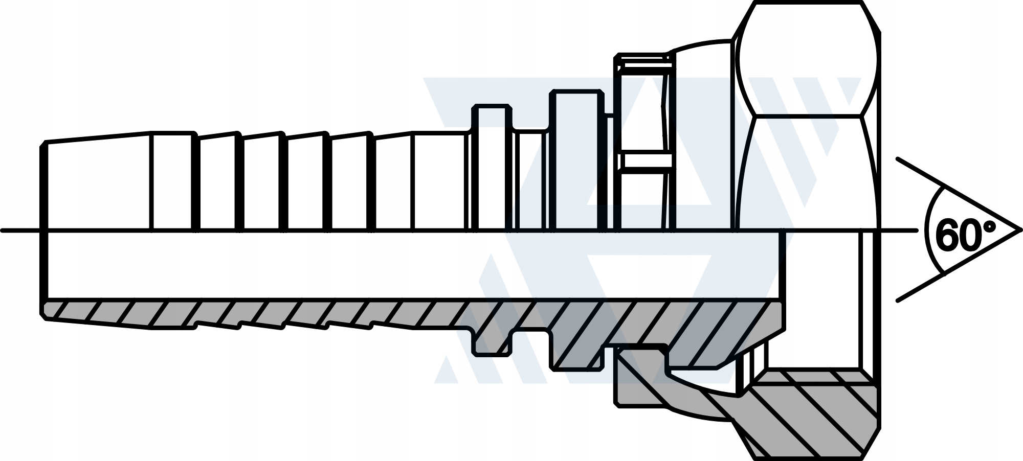 Кабель, обтиснутий з обох сторін із дюймовими клемами з конусом 60° DKR, прямий із внутрішньою різьбою 3/8" BSP (гайка).