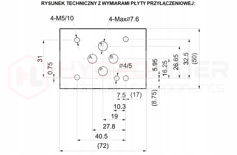 - Допустимий тиск: P, A, B: 350 бар; T: 100 бар